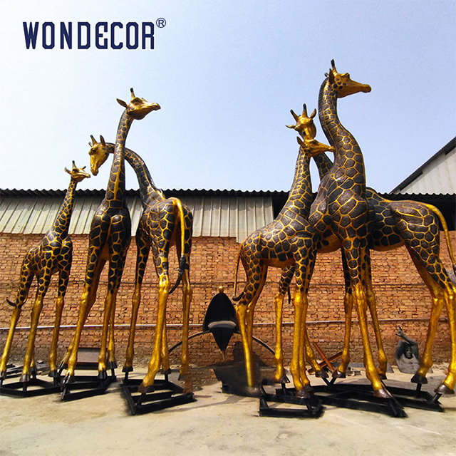 - Raumliche Anpassungsfähigkeit:Bronze-Giraffenskulpturen werden häufig in öffentlichen Räumen wie Parks und Plätzen verwendet, wo ihre feierliche Form harmonisch mit der natürlichen Umgebung interagiert.Kombination von künstlerischen und funktionellen Qualitäten.