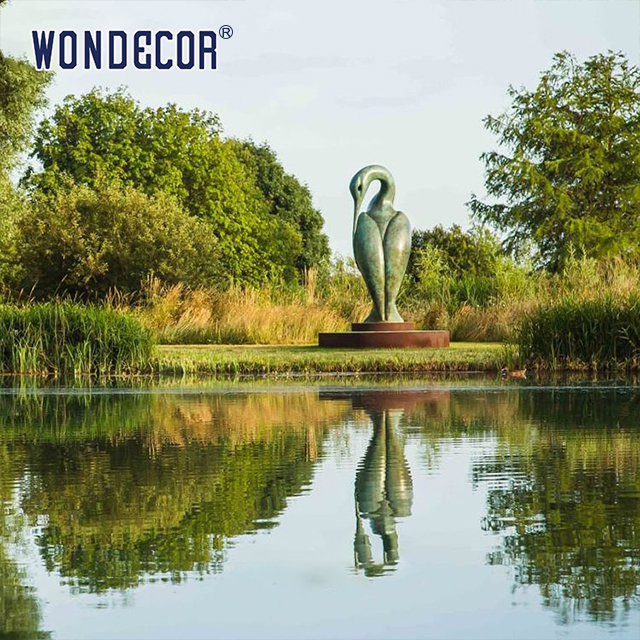 Wasservogelskulpturen werden häufig in Verkaufsbüros, Innenhöfen, Parks und anderen Orten verwendet, um durch Vögelbewegungen wie das Ausbreiten der Flügel und die Ruhe eine friedliche und dynamische Atmosphäre zu vermitteln.Zum Beispiel:, steht die Skulptur eines weißen Eckers am Rande eines Wasserpools, und wenn der Wind auf die Wasseroberfläche weht, schwankt der Schatten des Vogels und wird zum visuellen Mittelpunkt.Die interaktive Installation von Wasser-Features verbessert die visuelle Wirkung und Interaktion durch lokale Schnitzkunst-Punch-Design.