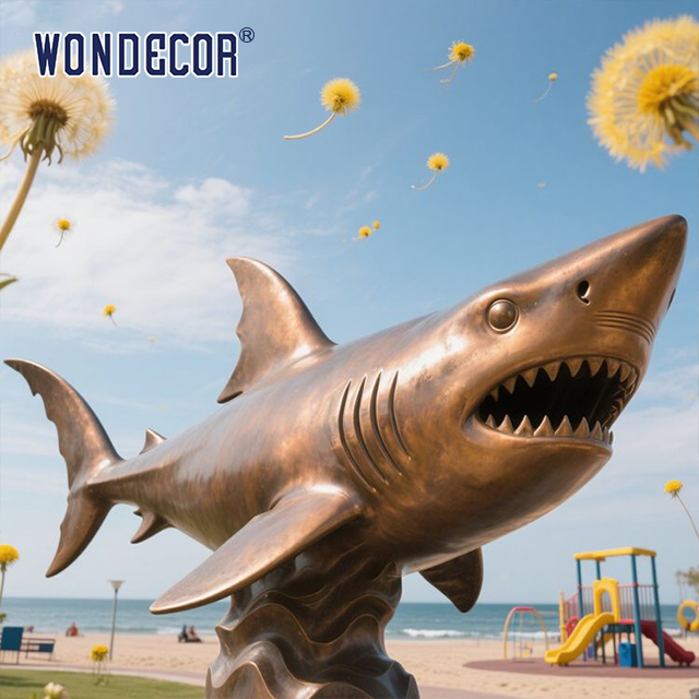 - Ausdrucksstärke der Form:Durch exquisite Schnitztechniken reproduzieren die Hai-Skulpturen biologische Merkmale wie scharfe Zähne, stromlinienförmige Körper und dynamische Schwimmhaltungen.die primitive Kraft der Natur zu zeigen und gleichzeitig dem Kunstwerk visuelle Wirkung zu verleihen.