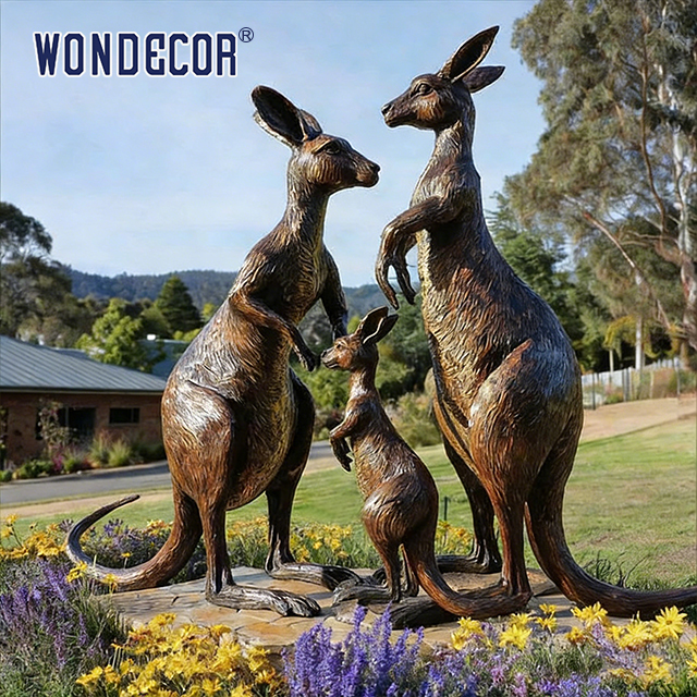 This life-size bronze kangaroo sculpture captures the dynamic energy of fighting kangaroos in exquisite detail. Crafted with precision casting techniques, it serves as an impressive decorative centerpiece for outdoor spaces including parks, gardens, squares, and commercial properties.